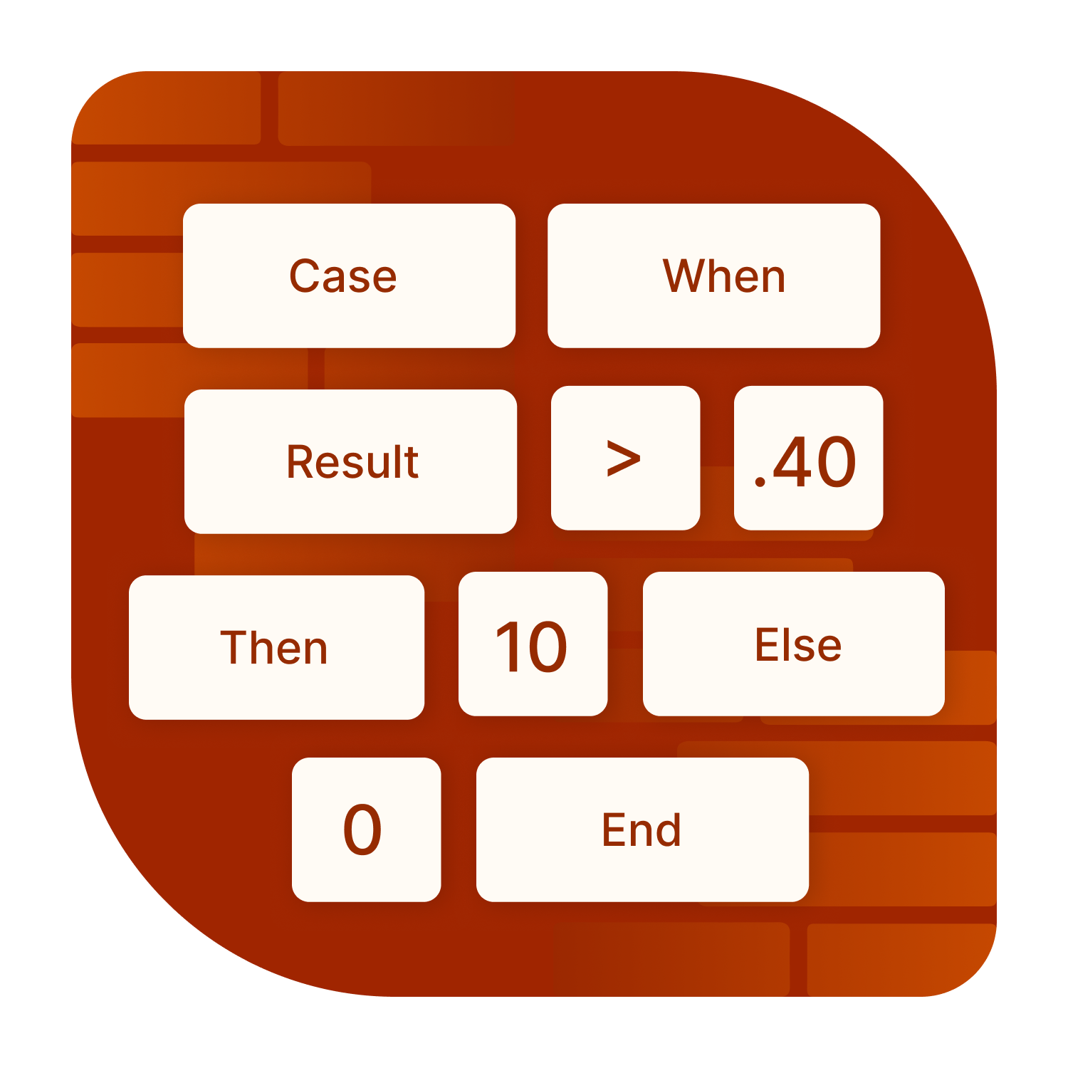 Now that we’ve built a tested results calculation and set out what we want to build, it’s time to assemble it. First, rebuild the result calculation and add the syntax for the first set of conditions.