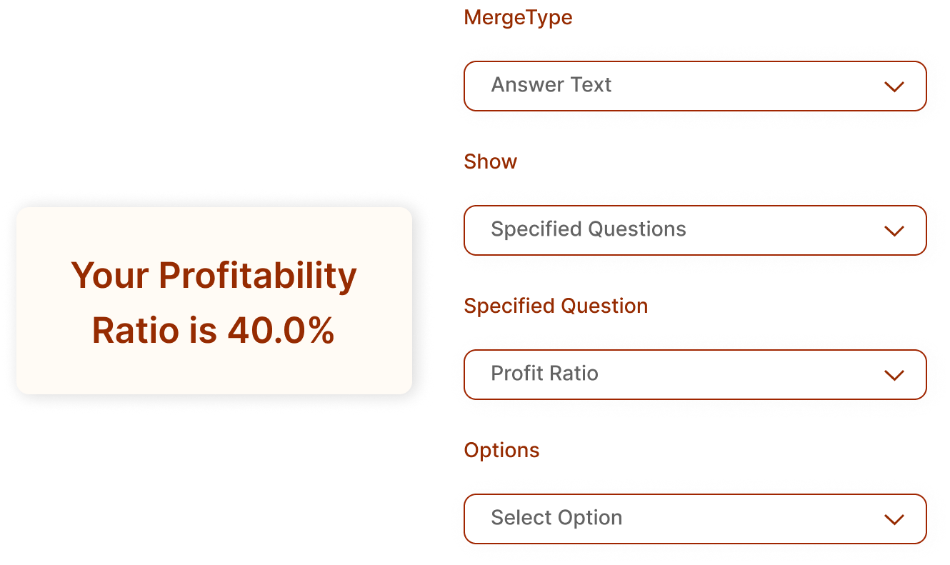 Result Calculations compute results, such as a Profit Ratio, by applying basic mathematical operations to numerical answers like subtraction and division.