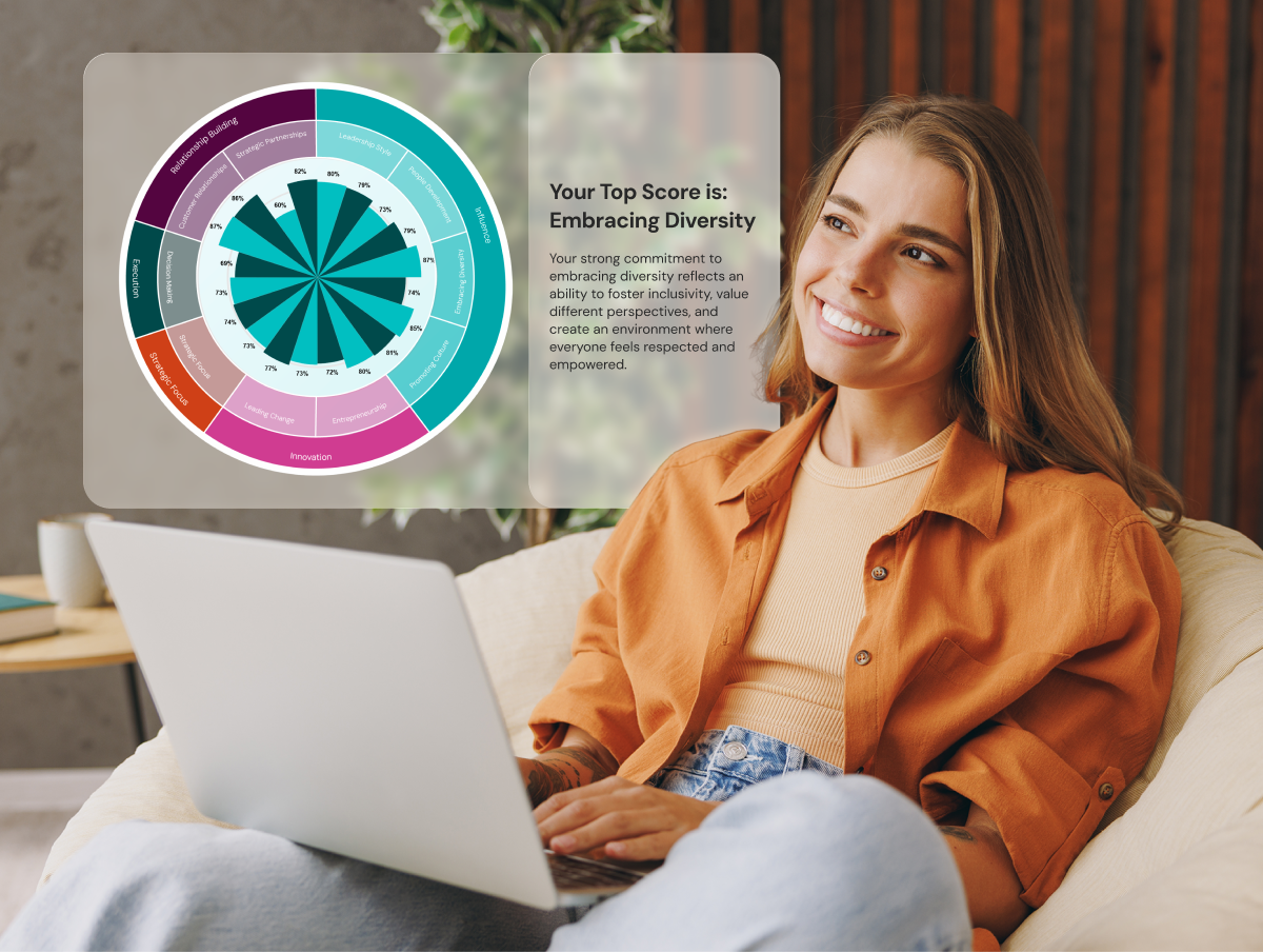 Design self-assessments, 360 feedback, cohort reviews, and development journeys around your own model, language, scoring, and reporting — then deliver tailored feedback at scale.